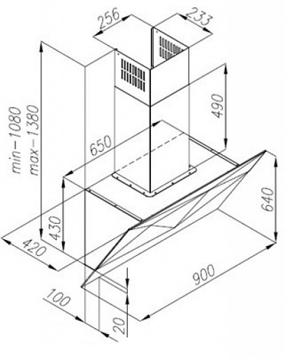 Višina z dekorativnim dimnikom: 1080-1380 mm